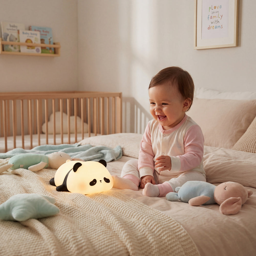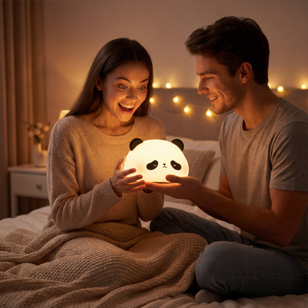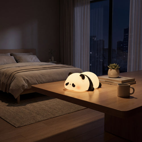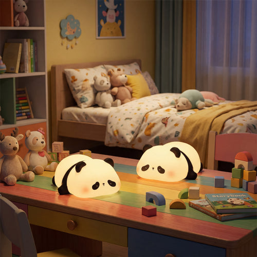 Illuminate your child's room with this adorable, squishy silicone panda lamp. Its soft, adjustable warm glow creates a soothing atmosphere perfect for bedtime comfort.