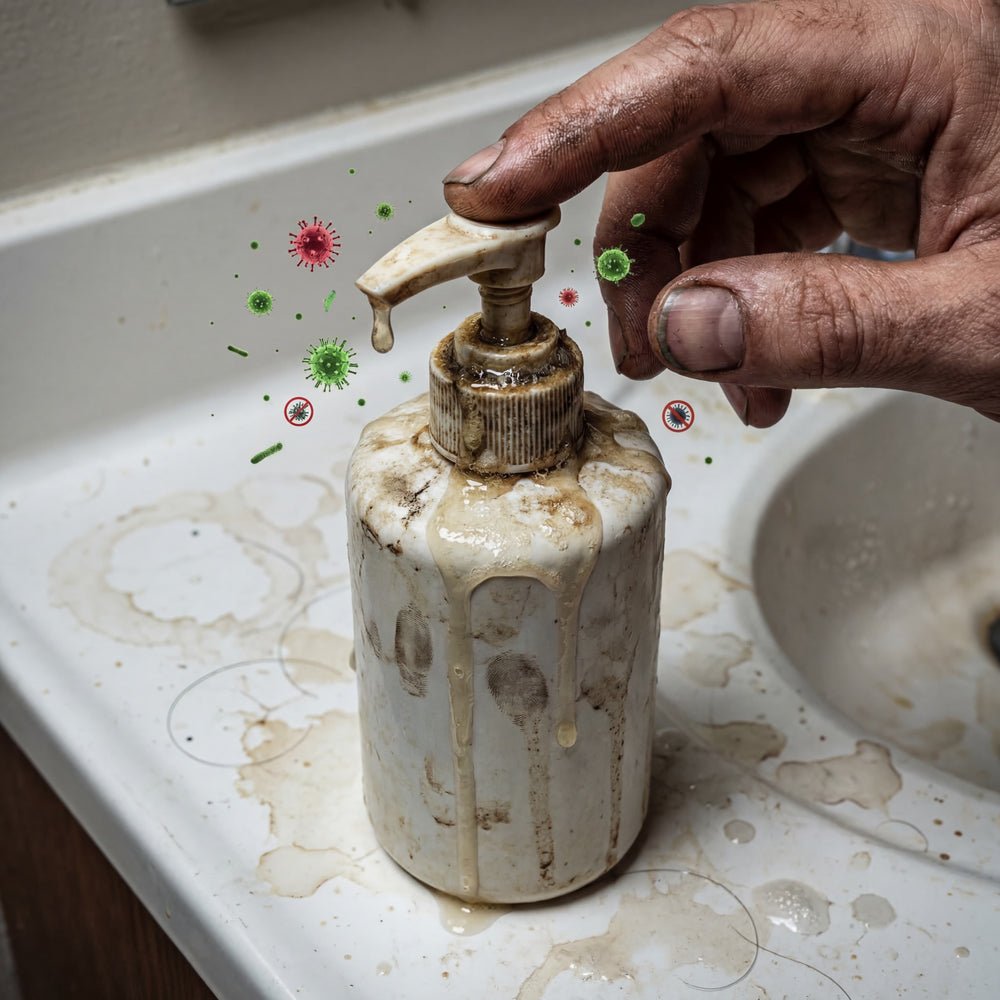 Every time someone in your home touches that old soap pump, they leave bacteria on it. Then the next person touches it. Then the next. You wash your hands to get clean but that pump just re-contaminates you every single time.
