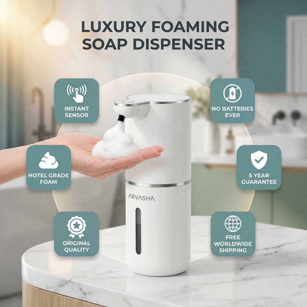 The ARVASHA Luxury Foaming Soap Dispenser brings 5-star hotel hygiene directly to your home. One wave of your hand delivers a perfect cloud of rich, luxurious foam zero contact, zero mess, zero germs.