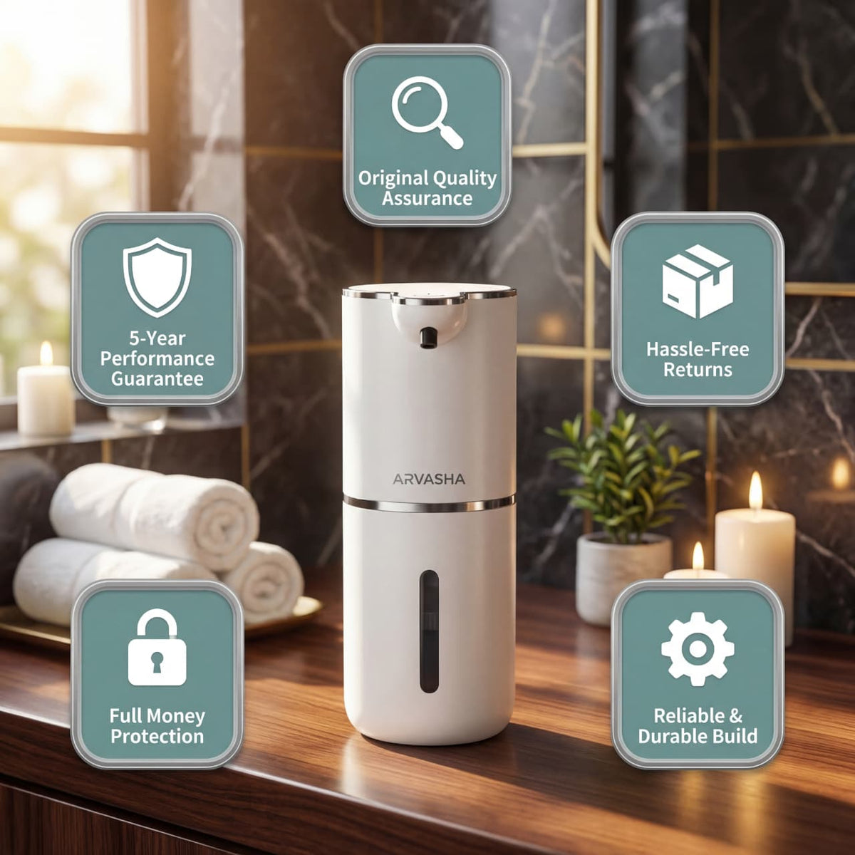 Every cheap dispenser you replace costs you time, money and frustration. A broken sensor. A leaking motor. Cracked plastic after 60 days. Meanwhile your family is still touching germ-covered pumps every single day. ARVASHA was built to end that cycle permanently. Original quality. Premium foam. Guaranteed 2 years